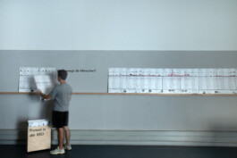 Ziel der Zusammenarbeit im Rahmen des ViSoP-Projektes ist es, diese wissenschaftlichen Daten aufzubereiten und für ein nicht-wissenschaftliches Publikum erfahrbar zu machen. In Kooperation wurde ein Konzept entwickelt, das die Entwicklung einer mobilen Ausstellung vorsieht. Diese Ausstellung ist interaktiv gestaltet und kann sowohl an festen Orten – wie beispielsweise am WZB – als auch von öffentlichen Institutionen wie Museen, Schulen oder Privatpersonen genutzt werden. Für jedes Jahrzehnt wurden zwei A2 Platten bedruckt, um die verschiedene Aspekte der Protestdaten zu visualisieren.