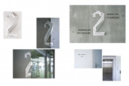 Nach einem Beschluss der Berliner Senatsverwaltung erhält die Hochschule für Schauspielkunst einen zentralen Standort in der Zinnowitzer Straße in Berlin-Mitte. Dort werden alle Studiengänge unter einem Dach vereint. Für die Realisierung wurde der Entwurf des Berliner Architekturbüros Ortner & Ortner ausgewählt. In seiner städteräumlichen Erscheinung wird er maßgeblich zur neuen Präsenz der Hochschule beitragen. Dieses Projekt widmet sich der Entwicklung einer visuellen Sprache für die Signaletik der Hochschule für Schauspielkunst. Ausgangslage für dieses Konzept ist die formale und inhaltliche Auseinandersetzung mit der Gebäudearchitektur im Zusammenhang mit dem Charakter der Hochschule. Die klare Architektur steht im Kontrast zu dem sehr bewegten und wandelbaren Gesicht der Institution. Auf Basis dieser Überlegungen kamen wir zu dem Schluss, dass unser Entwurf sowohl optisch als auch inhaltlich eine Verbindung zwischen »Außen und Innen« herstellen soll. Besonders markant wirken außenliegende Holzverstrebungen, die für den Betrachter als ein den Turm gleichmäßig strukturierendes Raster erscheinen. Dieses Raster ist Ausgangspunkt erster typografischer Versuche und Formexperimente. Aus der zweidimensionalen Vorlage entstand ein dreidimensionaler Buchstabenkörper, der in seiner eigenwilligen Verformung im Raum den lebendigen Charakter der Institution widerspiegelt. Die Buchstabenkörper lassen sich mit Hilfe einer Tiefziehmaschine reproduzieren. In ihrer Anwendung funktioniert die HfS Grotesk als eigenständiger Körper im Raum, sie schmiegt sich an die Wände an, schlängelt sich um die Ecke und verändert aus unterschiedlichen Blickwinkeln betrachtet ihre Gestalt. Sie wird als Displayschrift verwendet und steht in Kombination mit einer Kennzeichnungsschrift.