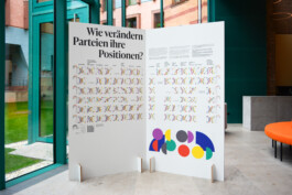 Die Masterarbeit von Miriam Seith und Mario Kreuzer befasst sich mit der Visualisierung parlamentarischer Kompromisse und der daraus resultierenden politischen Entscheidungen im deutschen Bundestag. Dieses Projekt wurde in Zusammenarbeit mit der Politikwissenschaftlerin Dr. Pola Lehmann vom Wissenschaftszentrum Berlin für Sozialforschung im Rahmen von VISOP, dem „Visual Society Program“ entwickelt. Pola Lehmanns Dissertation „Political Parties as Agents of Deliberative Representation“ dient als Grundlage für die Visualisierung der Positionsveränderungen deutscher Parteien von 1990 bis 2013 und bietet den Rahmen für die Konzeption einer Wanderausstellung.